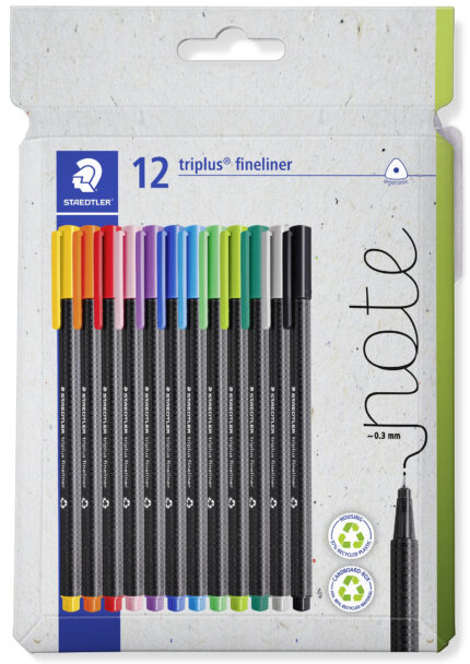 Rotuladores Triplus® Fineliner 334 en estuche de cartón con 12 rotuladores, colores surtidos.
