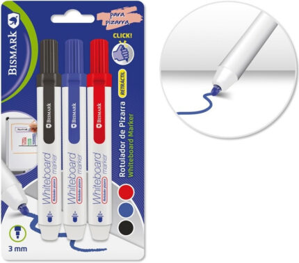 Rotulador Pizarra Retract Tip Blister 3 Colores Poessa
