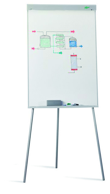Pizarra blanca de superficie melaminada, marco de aluminio y cantoneras decorativas. Permiten la escritura con rotuladores especiales para pizarra blanca.