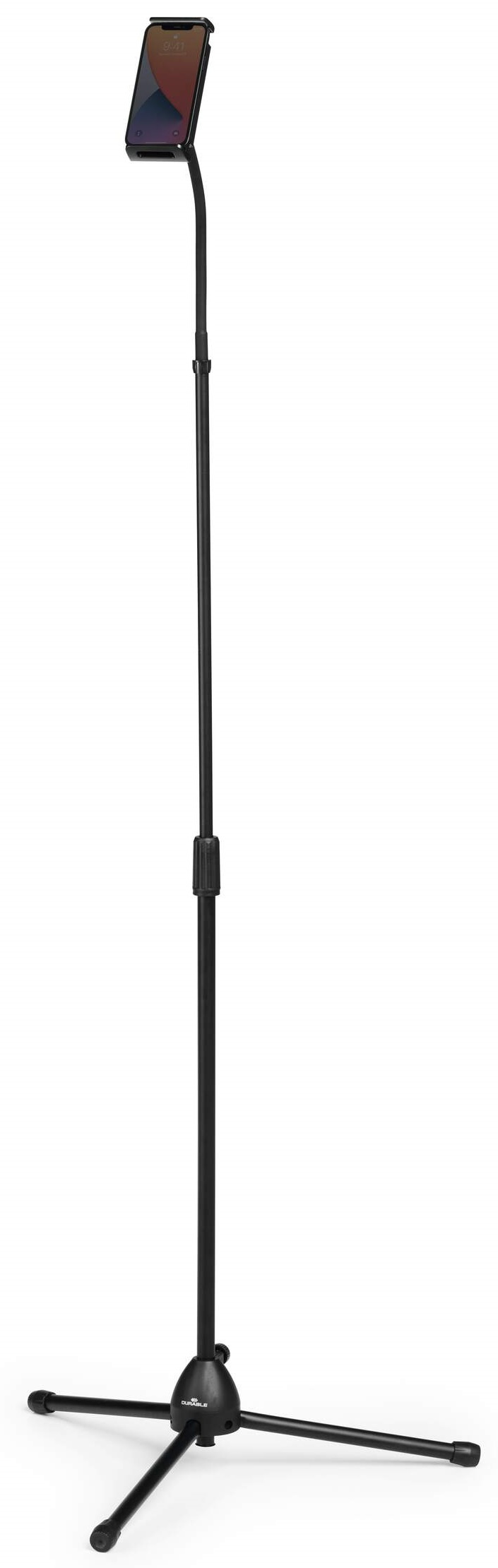 Cuenta con un brazo flexible, articulación esférica y cuello de cisne ajustable en altura. Compatible con dispositivos de 4.7 a 13″ y hasta 800 g, ofrece estabilidad con almohadillas antideslizantes y protección contra arañazos. Su pinza incluye gestión de cables y permite una rotación de 360º para un ajuste versátil.