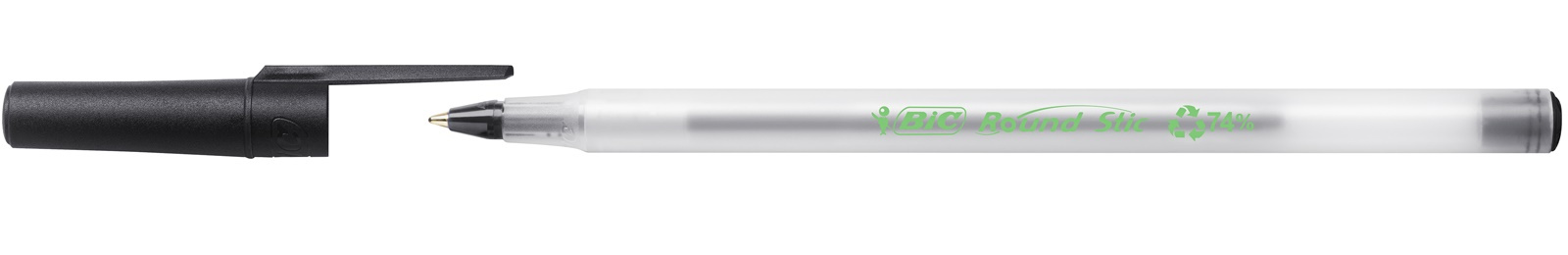 Reciclado de punta media de 1 mm. Trazo de 0.32 mm. Fabricado con un 97% de material reciclado. Cuerpo fino de color transparente.