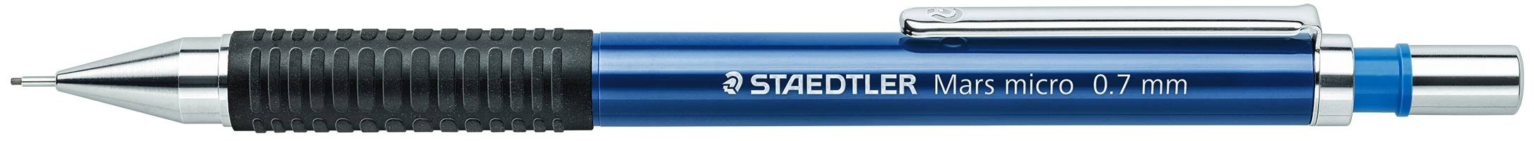 Portaminas para escribir y dibujar. Clip, pulsador y punta de metal. Empuñadura antideslizante de caucho. Cánula cilíndrica ideal para reglas y plantillas. Contiene minas HB y goma. Puntera retráctil.