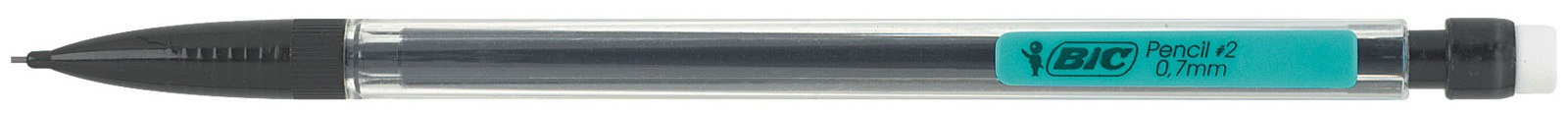 Portaminas desechable de plástico transparente con goma. Clip de colores surtidos. Contiene 3 minas HB.