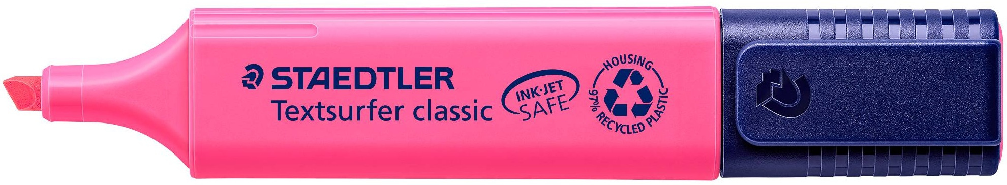 Fluorescente con tinta universal brillante, para resaltar sobre cualquier soporte: paper + copy + fax. Pueden usarse para resaltar impresiones InkJet sin emborronar. Colores resistentes a la luz. Cuerpo color de la tinta. Punta biselada. Ancho de trazo: 1 – 5 mm. Airplane safe (equilibrio automático de la presión de la tinta para evitar pérdidas durante el vuelo). Secado rápido.