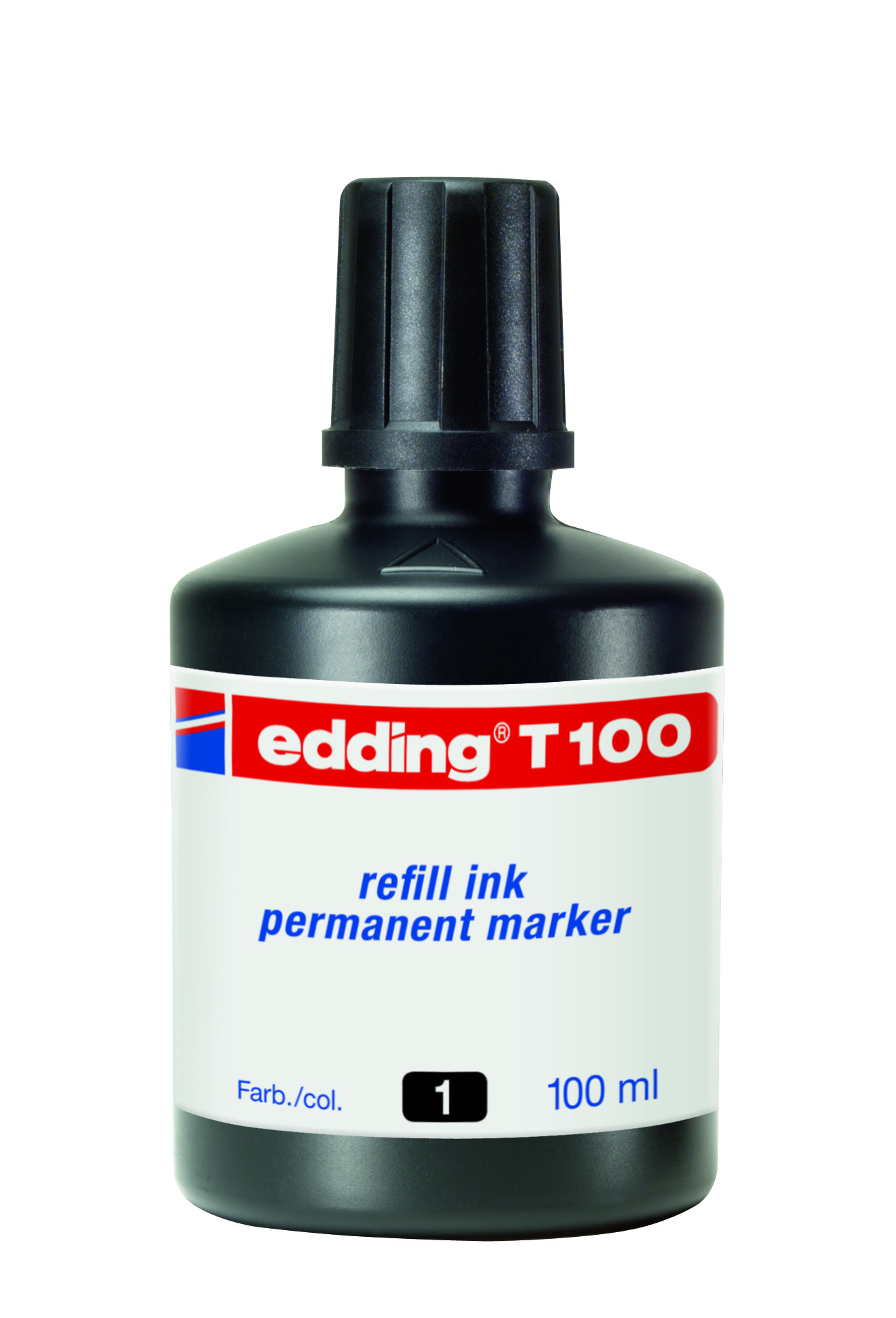 Tinta permanente casi sin olor en frasco con cánula para marcadores rellenables edding®. También se puede aplicar directamente con plumines, tampones, plantillas, etc.